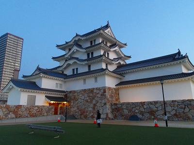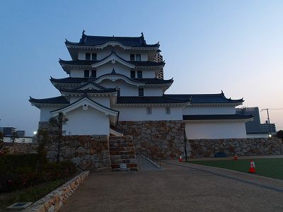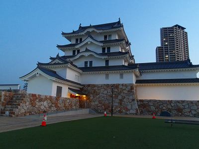 尼崎城には遺構がほとんど残っておらず、小学校の校庭に模型が展示されているくらいであったのだが、2019年3月、天守が復興され、公開されている。