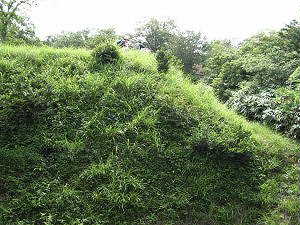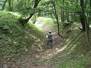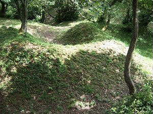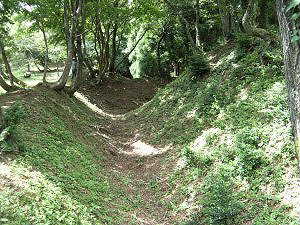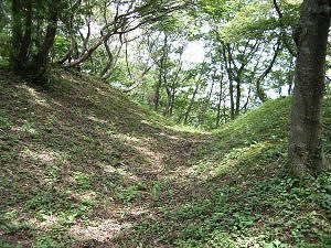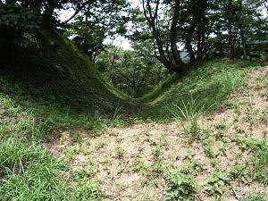 | 入口の郭の堀。深さ3m、幅5mほど。 | 南の郭の虎口 |