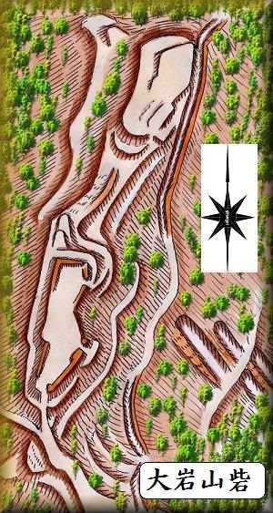 *現地案内図に基づいて作成した鳥瞰図。大岩山砦の位置はここ。