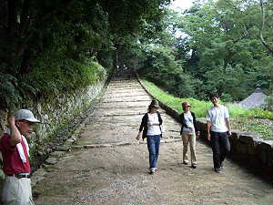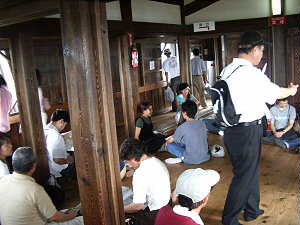 | 最上層。暑いせいか、ここで涼んでいる人たちでいっぱいである。 | 西野丸の先の堀切。隊員たちが撮影しているのは・・・・。 |