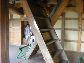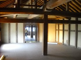 | 10年3月に久しぶりに彦根城を訪れたら、以前は公開していなかった現存建造物の内部が見られるようになっていたので、紹介しておく。これは天秤櫓の内部。 | 同じく天秤櫓の内部。 |