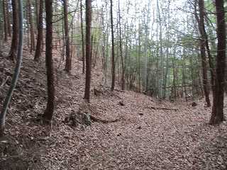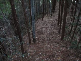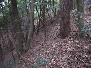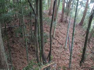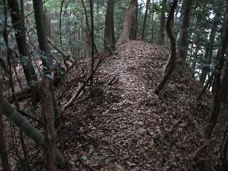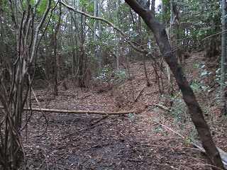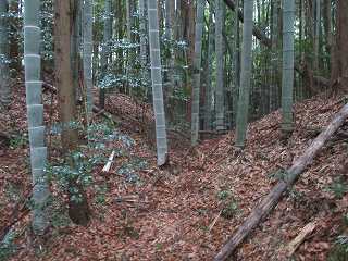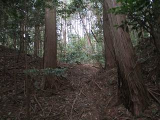 | 土塁上はかなり幅広になっている。 | 北側の竪堀。 |