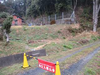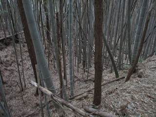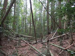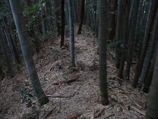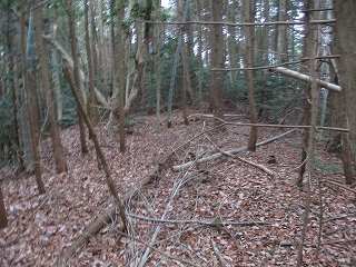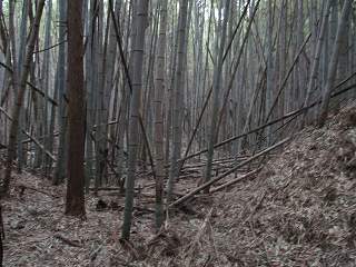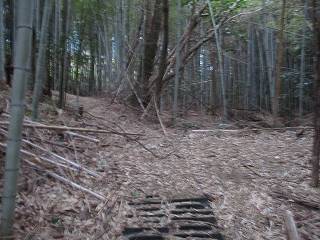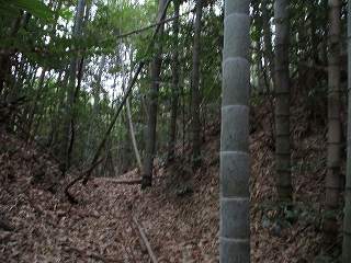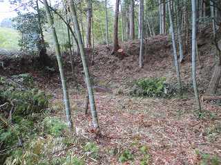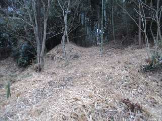| 北側の虎口。 | 郭内部。竹を切ってくれたのはいいが、郭内部に放置されているため、歩きにくくなっている。 |
