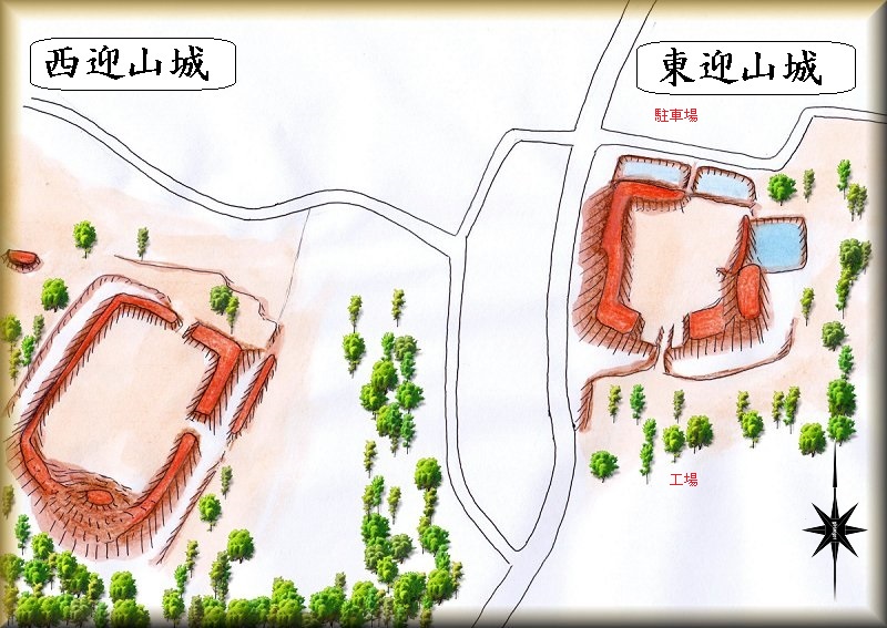 両者の規模は同程度であるが、西迎山城の方が若干広い面積を有している。ただし、周囲を巡る土塁は東迎山城の方が重厚なものとなっており、どちらの方がメインの城館であったのか判断しにくい。
