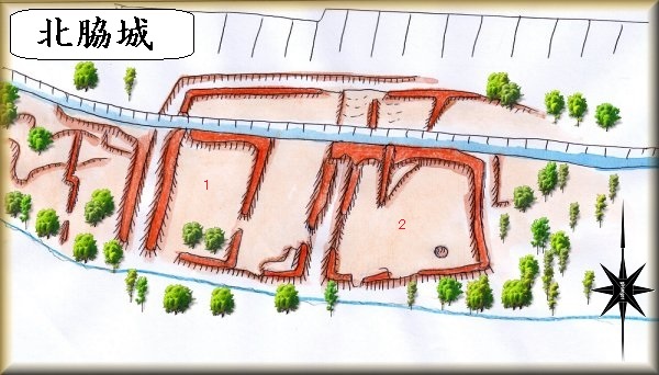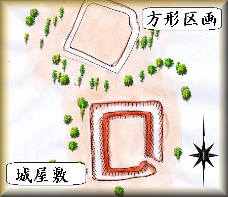 城屋敷の北側には別に方形の区画が確認でき、城館は2つあったのではないかと想像されるが、今となってはよく分からない。