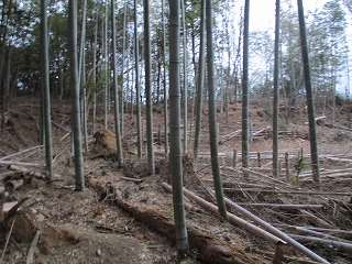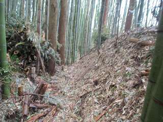 1郭内部は竹林となっているが、切られた竹が多数置かれているので、内部は歩きにくくなってしまっている。