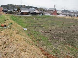 | 幅広の土塁。 | 北側の水堀跡。 |