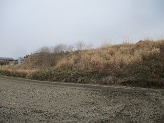 | 西側の土塁。幅広である。 | 北側の土塁。左側は堀の痕跡のようである。 |