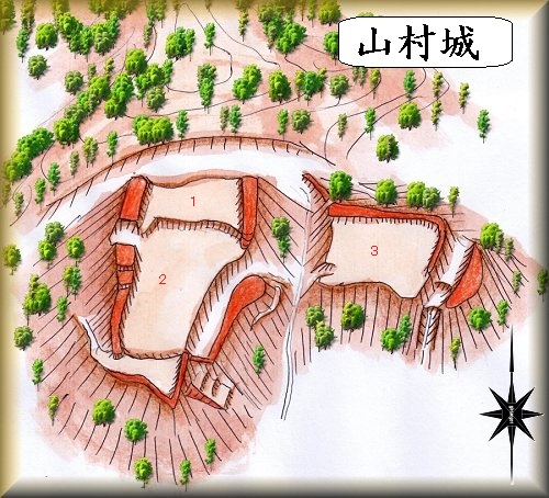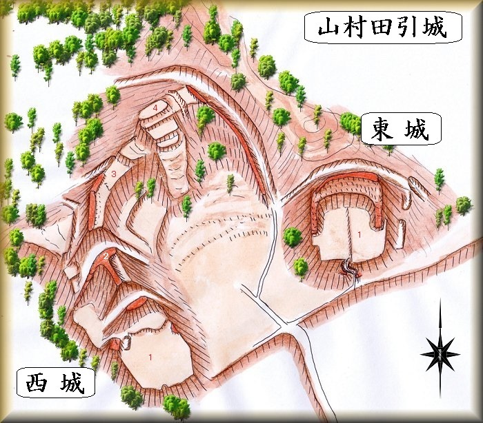 山村田引城(西城)の場所。 山村田引城(東城)の場所。