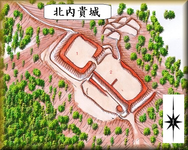 北内貴城は、伝承では、永禄年間に美濃部茂忠が築き、その子治繁の室の比佐女が住したため、比佐女殿屋敷とも呼ばれているとのことであるが、内室の居館としては違和感を感じるものといえよう。