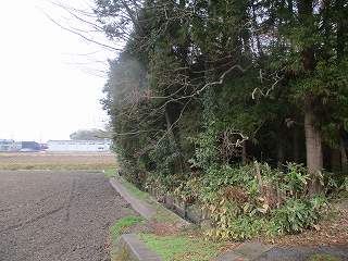 | 神社西側の土塁と堀。 | 神社南側の土塁と堀。 |