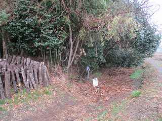 虫生野城の南側の登り口の所に案内板が立てられ、その南側の畑地まで車道が付けられているようだが、こちら側の登り口は確認していない。