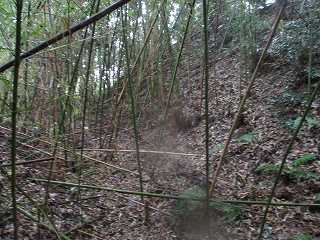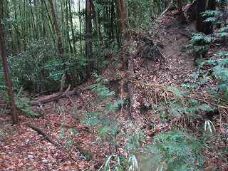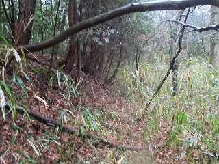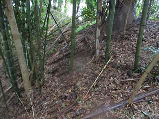 | 山上T城の入口。 | 山上T城の切岸。 |