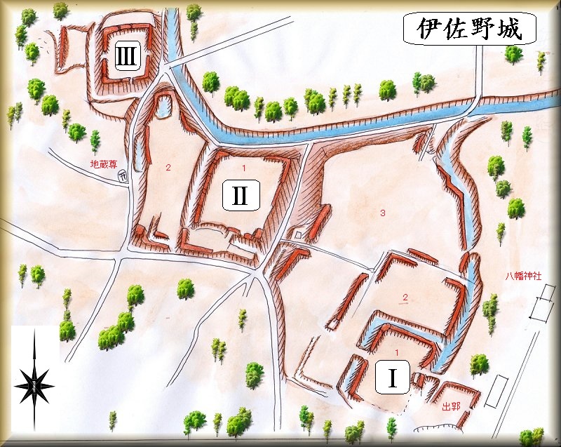 伊佐野城T群の場所。 伊佐野城U群の場所。 伊佐野城V群の場所。