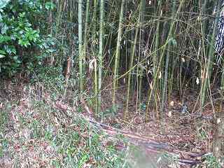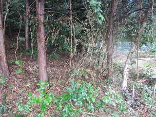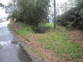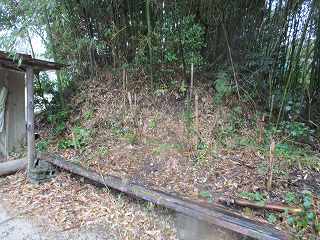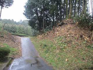 | 杣中公民館から土塁の方向を見たところ。 | 土塁。 |