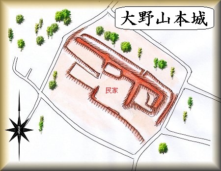 大野山本城は、大野大蔵太夫によって築かれたと伝えられる。