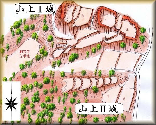 山上T城の場所。 山上U城の場所。