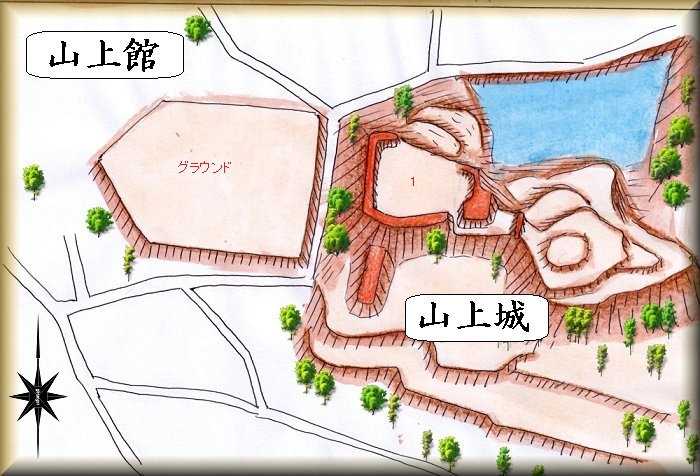 山上城の場所。 山上館の場所。