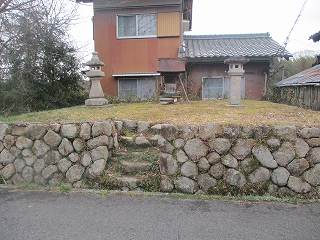 寺院に行くと、墓地の背後に土塁があるのが見える。東側にも土塁がある。『甲賀市史』の図によると、南東側にも重厚な土塁が描かれているが、これは現在では取り払われてしまっているように見える。