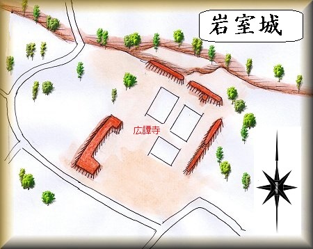 岩室にある広譚寺が岩室城の跡である。したがってこの寺院を目指して行けばよい。車も広譚寺の駐車場に停めておくことができる。