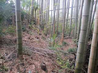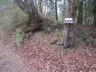 城から降りる際に、この参道を通って行ったら、途中から南側に降りていく道があった。ここから登ってくれば、ヤブを通らずに城内に行くことも可能である。入口はこの辺りである。