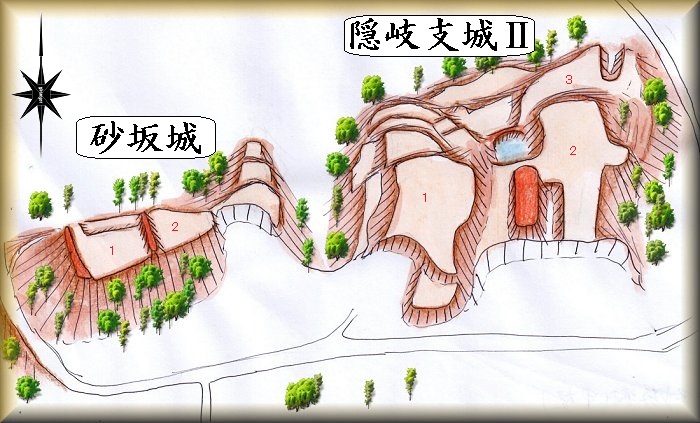 砂坂城の場所。 隠岐支城Uの場所。