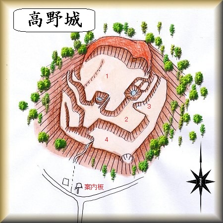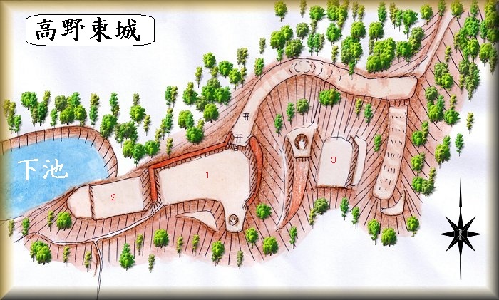 高野東城は高野城の支城であったと思われ、城主はやはり高野氏の一族であったであろう。