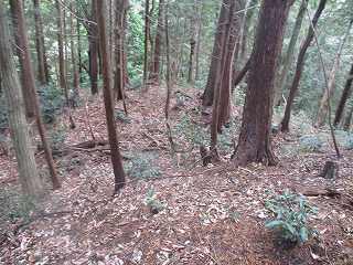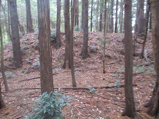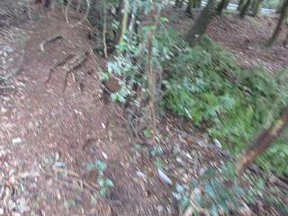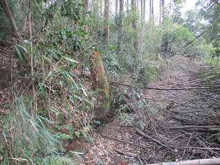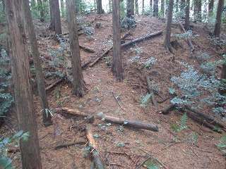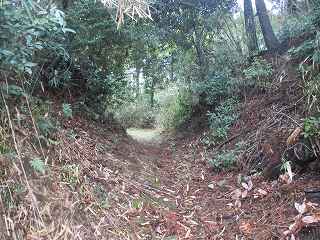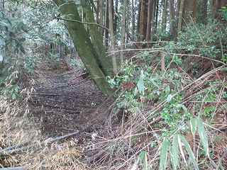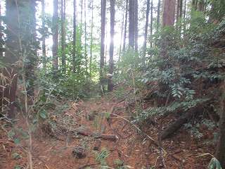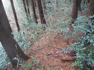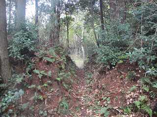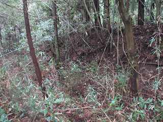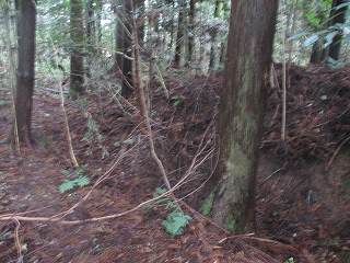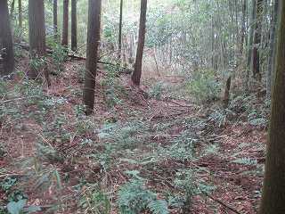 | ここから大原上田城に取り付いた。 | 東側の堀切。東側が凹状に窪んでいる。 |