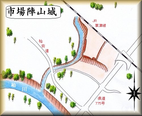 市場陣山城の場所。