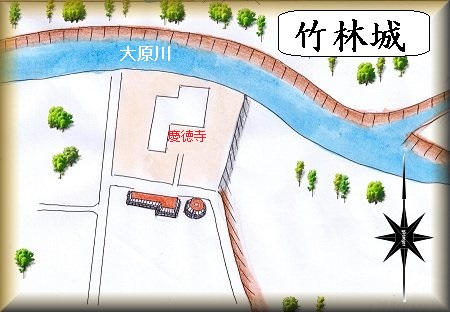 相模の慶徳寺の境内が竹林城の跡である。「竹の花」という地名が残されているが、これはおそらく「館の先(はな)」が転じたものであったと考えられる。城郭関連地名である。