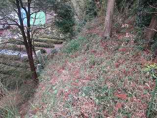 | 神社東側の庭園。 | 1郭の土塁。 |