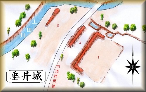 垂井城は甲斐屋敷とも呼ばれ、明応年間に垂井甲斐守によって築かれた城館であったと伝えられている。