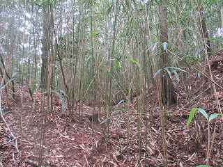 それでも周囲を歩いて竹ヤブの中に入り込んでみると、堀と土塁が現存していることを何とか確認することができる。それにしても竹が密集しすぎている。