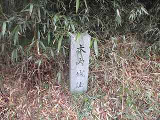 県道沿いの竹藪となっているところが木内城の跡である。一見してただの竹藪にしか見えないが、南側の入口付近には城址碑が建てられている。