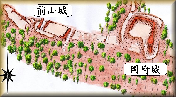 岡崎城の場所。 前山城の場所。