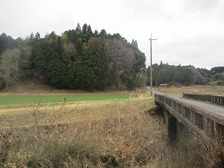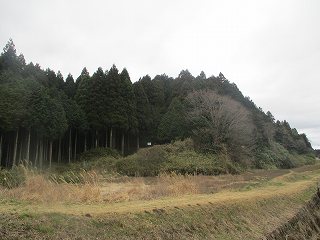 | その下には土塁に囲まれた池の跡がある。 | 背後の高土塁。 |