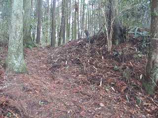 | 土塁上の櫓台状部分。 | 背後の堀切。 |