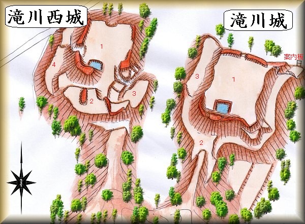 滝川城の場所。 滝川西城の場所。
