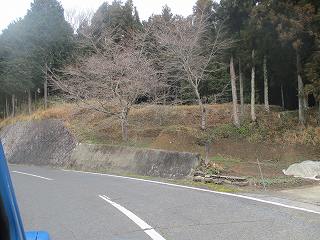滝川西城は、滝川城と並行して並ぶ山稜上に築かれている。登城口はこの辺りにあり、道路脇には車を停められる空き地もあるので、車はそこに停めさせていただくとよいだろう。