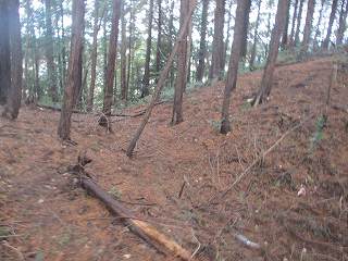 そこで道路脇に車を寄せて、コンクリート加工されているラインの端の方から山稜に取り付いて入り込んでみた。