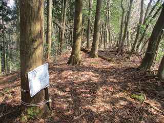 尾根までの到達方法は堂木山砦と同じである。尾根上の堀切の所にある案内から柵を開けて西側の山稜に入って行く。