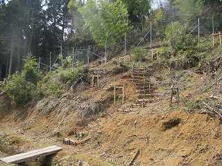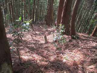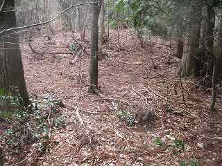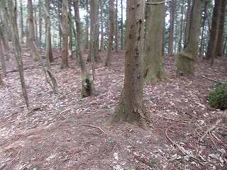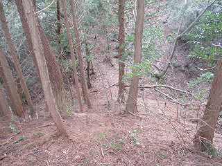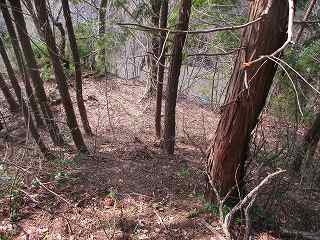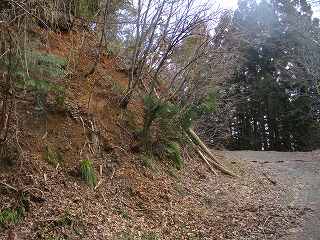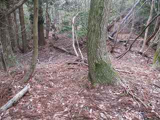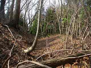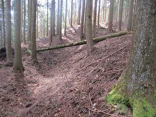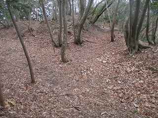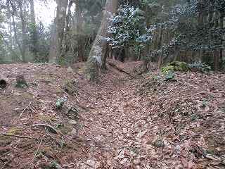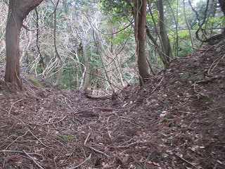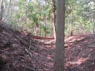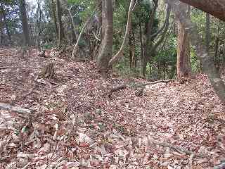 | 3の西側にある虎口状の部分。 | 2の下の道。図にすると竪堀のように見えるのだが、実際にはただの山道である。 |