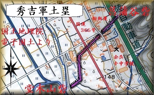 長浜市余呉町東野305番地の辺りに賤ヶ岳の合戦秀吉軍土塁があり、googlemapにも掲載されている。