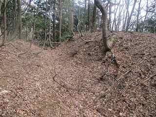| 2郭の西端にある土塁。 | その先の堀切。 |