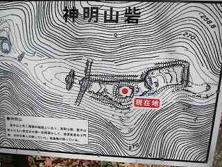 | 神明山砦も、天正11年(1583)の賎ヶ岳合戦に際して、羽柴秀吉方の砦として築かれたものである。 砦を守備していたのは蜂須賀彦家政と木村重茲であったと言われている。 |