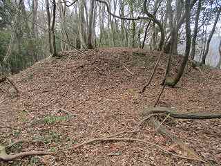 尾根を登って行くと、土塁で囲まれた最初の郭に到達する。ここが3郭である。