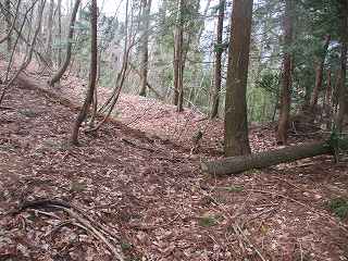 堀切を越えたところが3郭。ここは傾斜地形のままである。北側には土塁が盛られている。