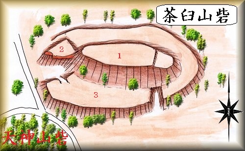 茶臼山砦はそれほど大規模ではなく、平地からの比高差も少ないが、切岸が鋭く造成されているので、それなりに防御性の高い砦であったと考えられる。