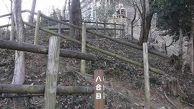 | 八合目の小郭付近。このように「○合目」といった表示があるので、気分的にも歩きやすい。 | 2郭にある展望台。脇にはLEDの巨大なイルミネーションが設置されている。 |