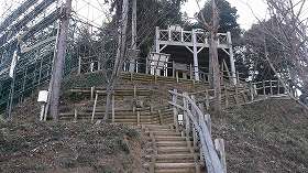 | 1郭内部に保存されている石垣の名残。 | 2郭の新開神社。 |